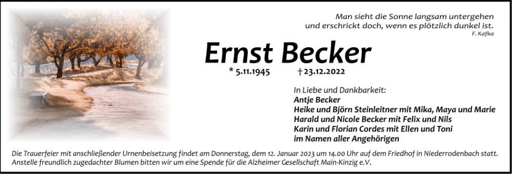 Ich habe heute bei einem Besuch im Heimatmuseum in Rodenbach vom Tod meines langjährigen Arbeitskollegen Ernst Becker erfahren. In Hochachtung verbeuge ich mich und gebe den Angehörigen mein Mitgefühl bekannt. Ich bete für ihn.