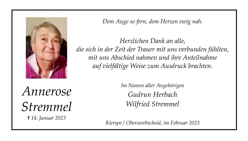 in diesen Tagen fühlen wir mit Ihnen und wünschen Ihnen von Herzen, dass Sie aus den glücklichen Erinnerungen Kraft schöpfen, um positiv in die Zukunft zu gehen. Diese Gedenkseite möge Ihnen dabei helfen, Ihre Trauer zu teilen und das Andenken gemeinsam wachzuhalten.