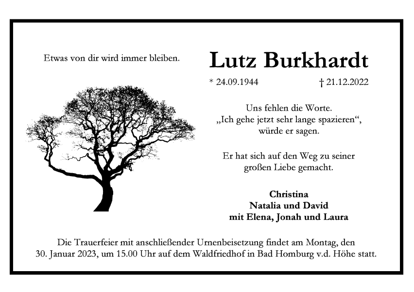 †21.12.2022, Ruhestätte: Waldfriedhof, Bad Homburg