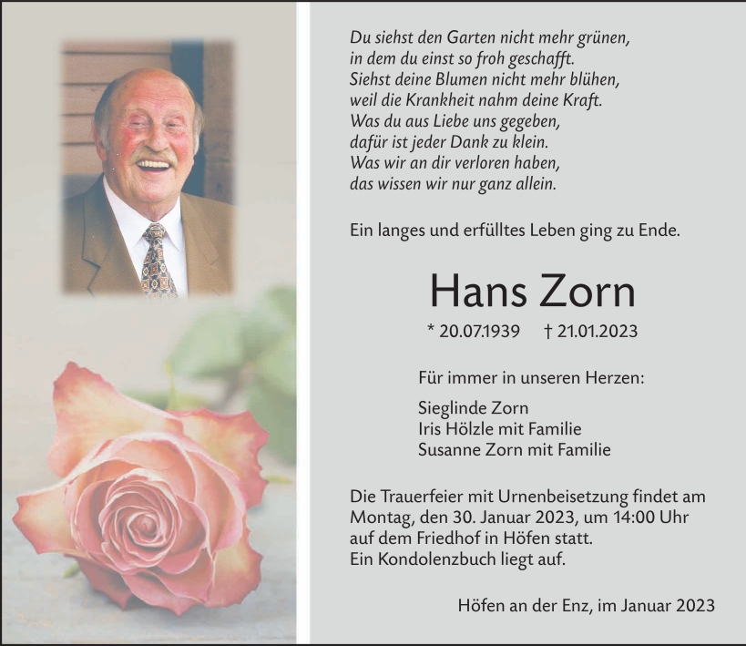 †21.01.2023, Ruhestätte: Friedhof Höfen an der Enz