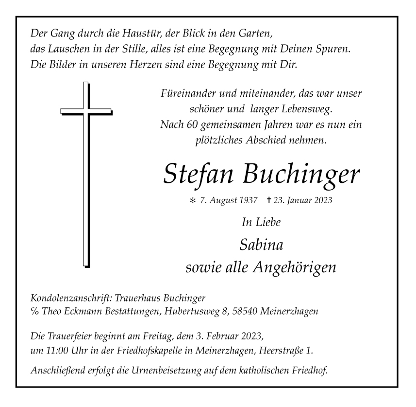 in diesen Tagen fühlen wir mit Ihnen und wünschen Ihnen von Herzen, dass Sie aus den glücklichen Erinnerungen Kraft schöpfen, um positiv in die Zukunft zu gehen. Diese Gedenkseite möge Ihnen dabei helfen, Ihre Trauer zu teilen und das Andenken gemeinsam wachzuhalten.