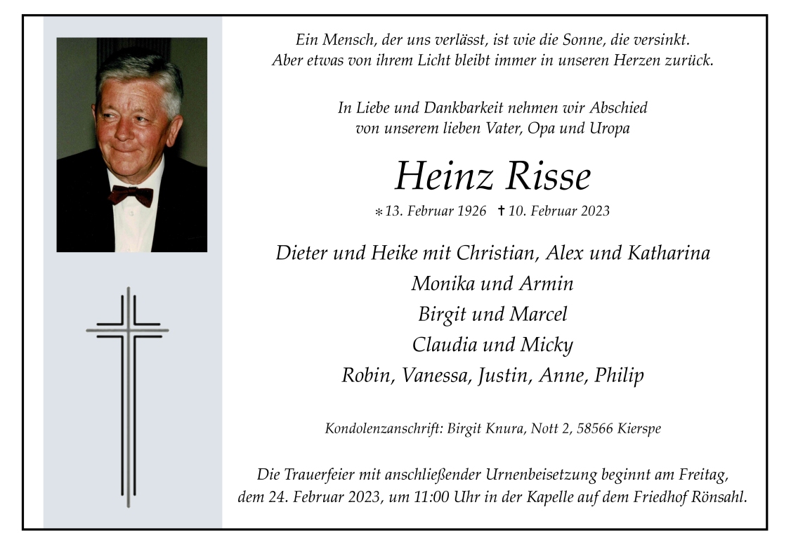 in diesen Tagen fühlen wir mit Ihnen und wünschen Ihnen von Herzen, dass Sie aus den glücklichen Erinnerungen Kraft schöpfen, um positiv in die Zukunft zu gehen. Diese Gedenkseite möge Ihnen dabei helfen, Ihre Trauer zu teilen und das Andenken gemeinsam wachzuhalten.