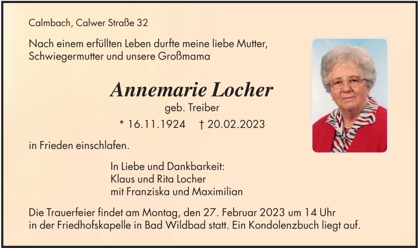 †20.02.2023, Ruhestätte: Waldfriedhof Bad Wildbad