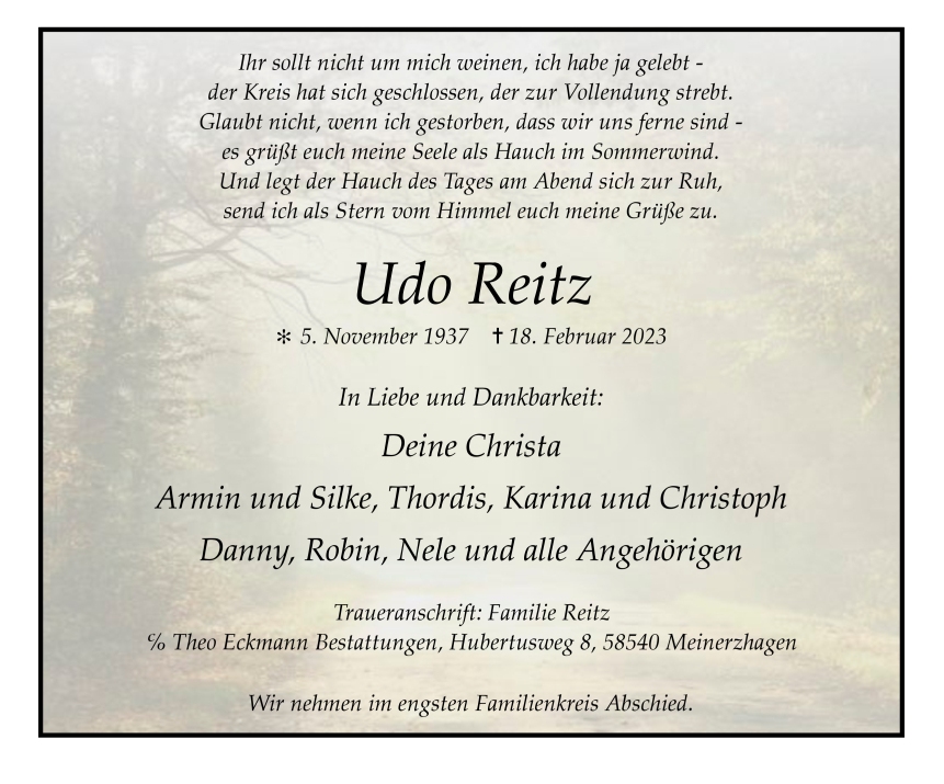 in diesen Tagen fühlen wir mit Ihnen und wünschen Ihnen von Herzen, dass Sie aus den glücklichen Erinnerungen Kraft schöpfen, um positiv in die Zukunft zu gehen. Diese Gedenkseite möge Ihnen dabei helfen, Ihre Trauer zu teilen und das Andenken gemeinsam wachzuhalten.