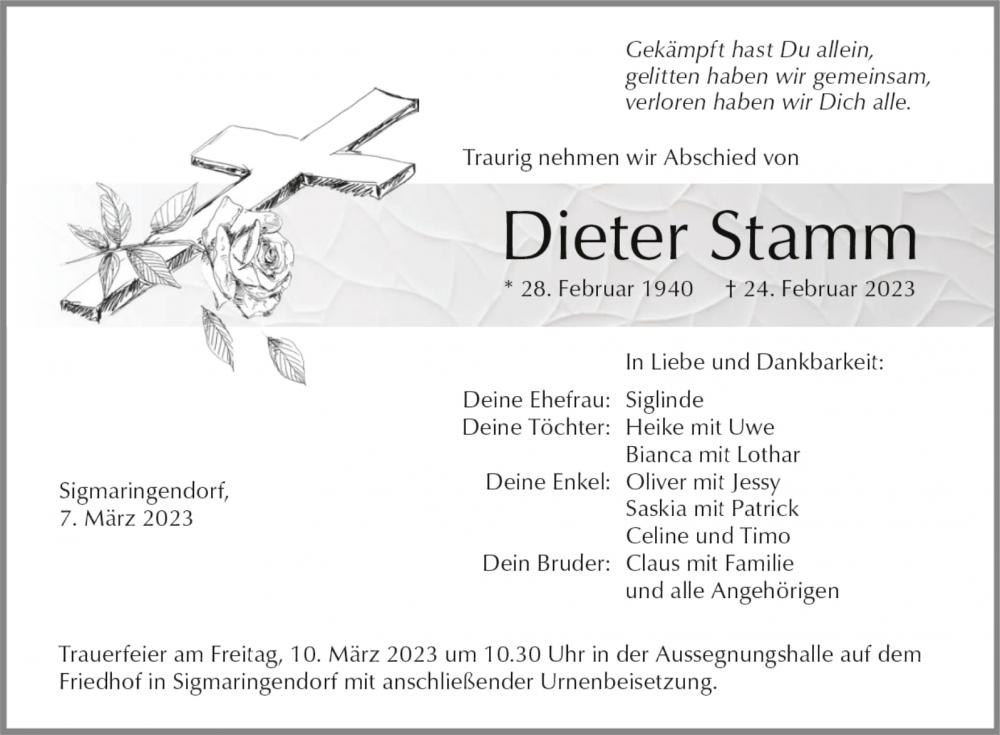 Trauerfeier am Freitag, 10. März 2023 um 10.30 Uhr in der Aussegnungshalle auf dem Friedhof in Sigmaringendorf mit anschließender Urnenbeisetzung.
