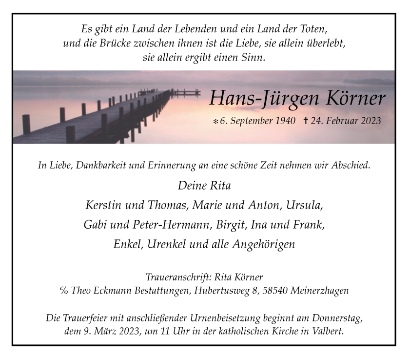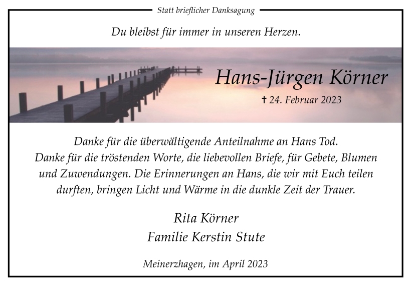 in diesen Tagen fühlen wir mit Ihnen und wünschen Ihnen von Herzen, dass Sie aus den glücklichen Erinnerungen Kraft schöpfen, um positiv in die Zukunft zu gehen. Diese Gedenkseite möge Ihnen dabei helfen, Ihre Trauer zu teilen und das Andenken gemeinsam wachzuhalten.