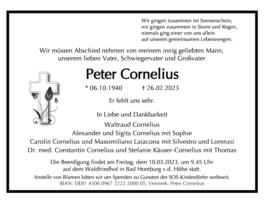 †26.02.2023, Ruhestätte: Waldfriedhof, Bad Homburg