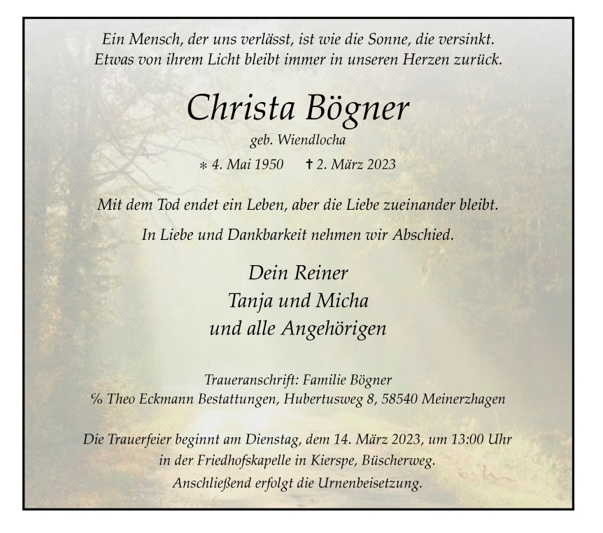 in diesen Tagen fühlen wir mit Ihnen und wünschen Ihnen von Herzen, dass Sie aus den glücklichen Erinnerungen Kraft schöpfen, um positiv in die Zukunft zu gehen. Diese Gedenkseite möge Ihnen dabei helfen, Ihre Trauer zu teilen und das Andenken gemeinsam wachzuhalten.