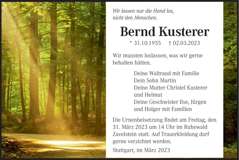†02.03.2023, Ruhestätte: Ruhewald Zavelstein
