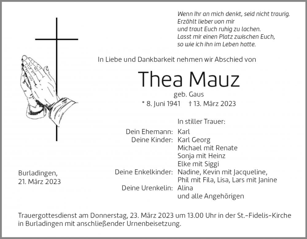Trauerfeier am Donnerstag, 23. März 2023 um 13 Uhr in der St. Fidelis-Kirche in Burladingen mit anschließender Urnenbeisetzung.