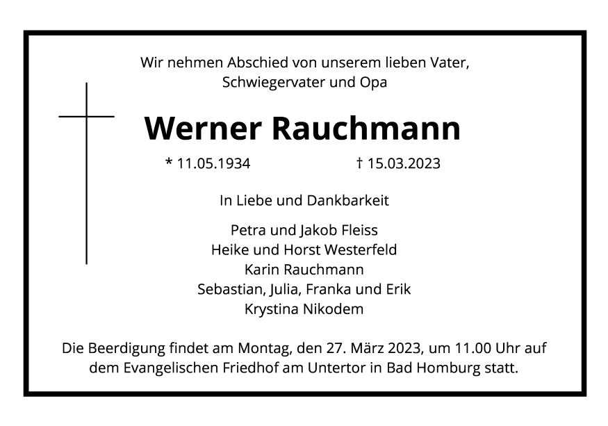 †15.03.2023, Ruhestätte: Ev. Friedhof, Bad Homburg
