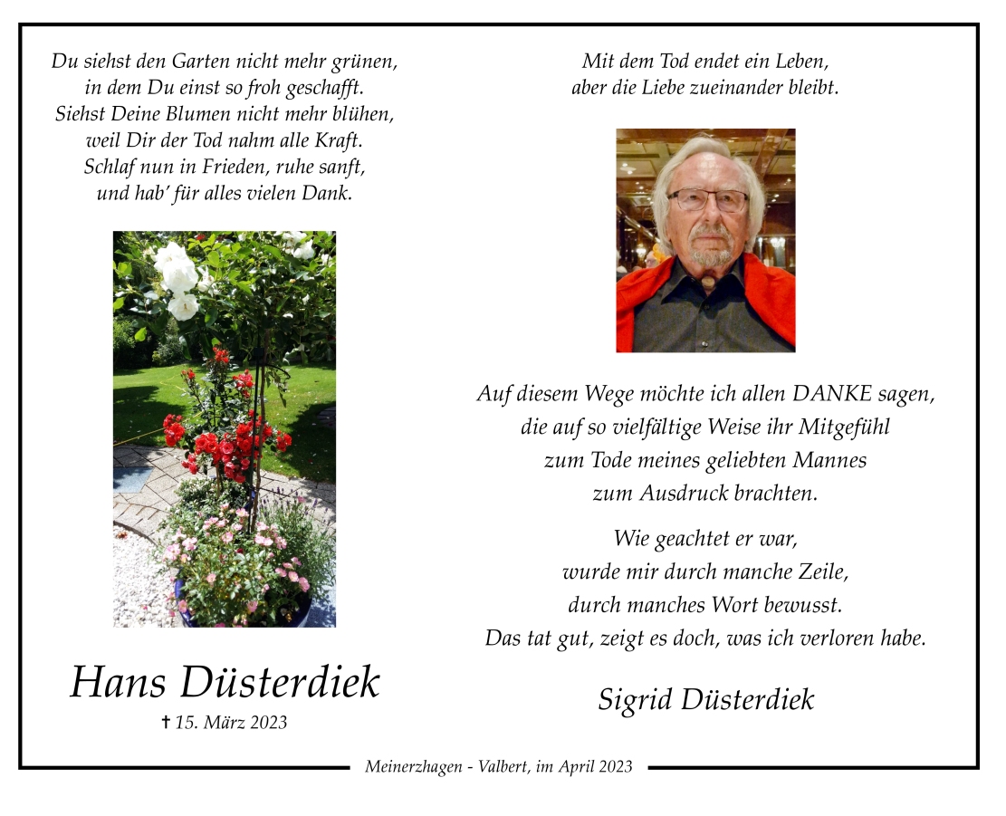 in diesen Tagen fühlen wir mit Ihnen und wünschen Ihnen von Herzen, dass Sie aus den glücklichen Erinnerungen Kraft schöpfen, um positiv in die Zukunft zu gehen. Diese Gedenkseite möge Ihnen dabei helfen, Ihre Trauer zu teilen und das Andenken gemeinsam wachzuhalten.