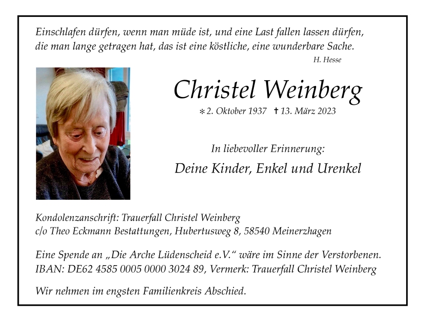 in diesen Tagen fühlen wir mit Ihnen und wünschen Ihnen von Herzen, dass Sie aus den glücklichen Erinnerungen Kraft schöpfen, um positiv in die Zukunft zu gehen. Diese Gedenkseite möge Ihnen dabei helfen, Ihre Trauer zu teilen und das Andenken gemeinsam wachzuhalten.
