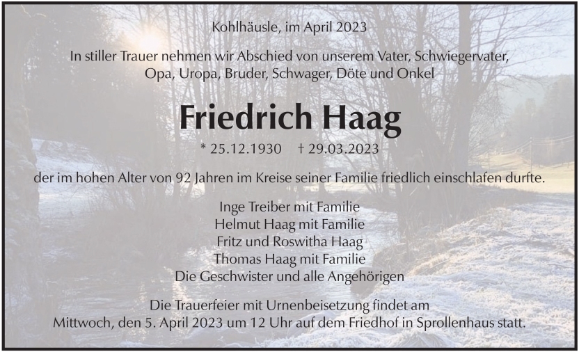 †29.03.2023, Ruhestätte: Friedhof Sprollenhaus