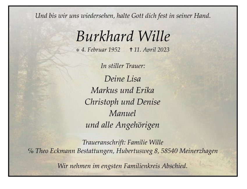 in diesen Tagen fühlen wir mit Ihnen und wünschen Ihnen von Herzen, dass Sie aus den glücklichen Erinnerungen Kraft schöpfen, um positiv in die Zukunft zu gehen. Diese Gedenkseite möge Ihnen dabei helfen, Ihre Trauer zu teilen und das Andenken gemeinsam wachzuhalten.