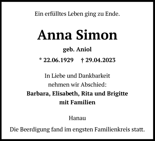 †29.04.2023, Ruhestätte: Friedhof Hanau Haupt