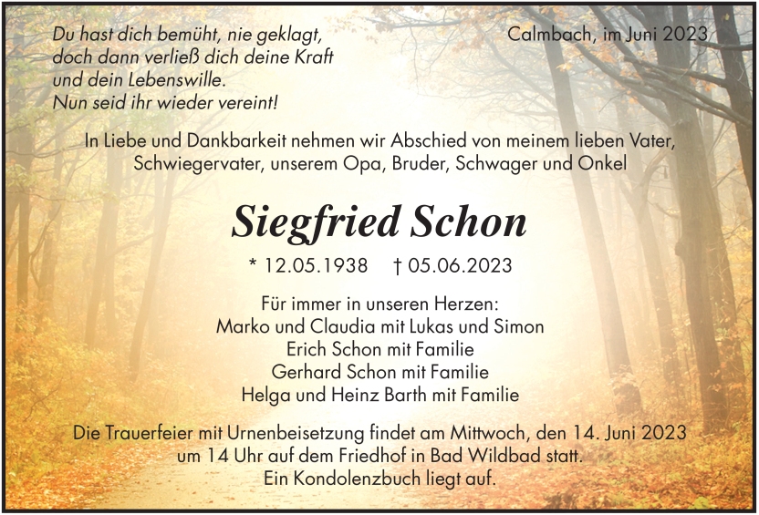 †05.06.2023, Ruhestätte: Waldfriedhof Bad Wildbad