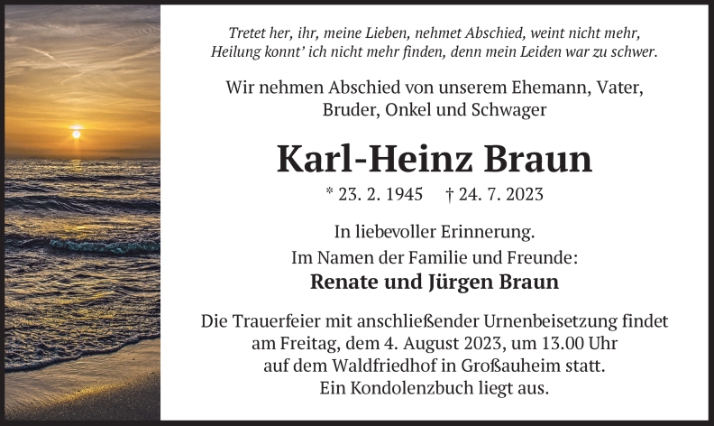 In stillem Gedenken Margit u. Walter Gutermann Kahl/Main
