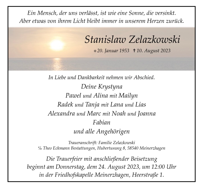 in diesen Tagen fühlen wir mit Ihnen und wünschen Ihnen von Herzen, dass Sie aus den glücklichen Erinnerungen Kraft schöpfen, um positiv in die Zukunft zu gehen. Diese Gedenkseite möge Ihnen dabei helfen, Ihre Trauer zu teilen und das Andenken gemeinsam wachzuhalten.