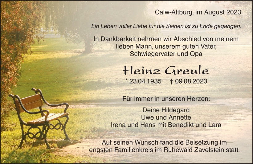 †09.08.2023, Ruhestätte: Ruhewald Zavelstein