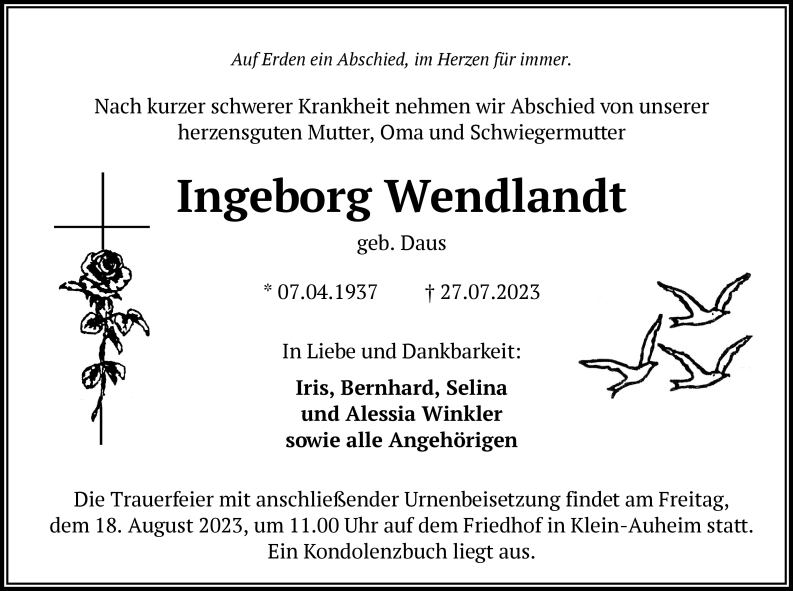 †27.07.2023, Ruhestätte: Friedhof Klein-Auheim