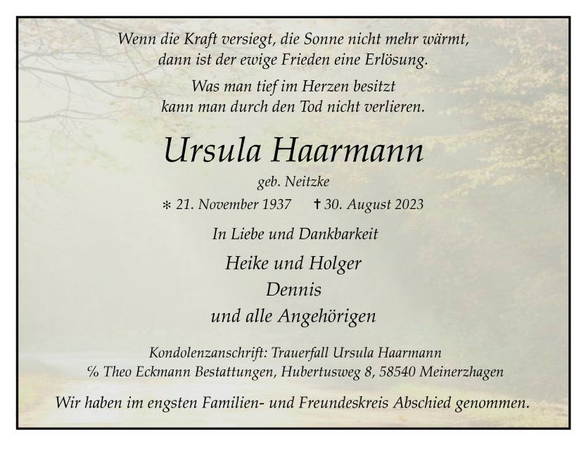 in diesen Tagen fühlen wir mit Ihnen und wünschen Ihnen von Herzen, dass Sie aus den glücklichen Erinnerungen Kraft schöpfen, um positiv in die Zukunft zu gehen. Diese Gedenkseite möge Ihnen dabei helfen, Ihre Trauer zu teilen und das Andenken gemeinsam wachzuhalten.