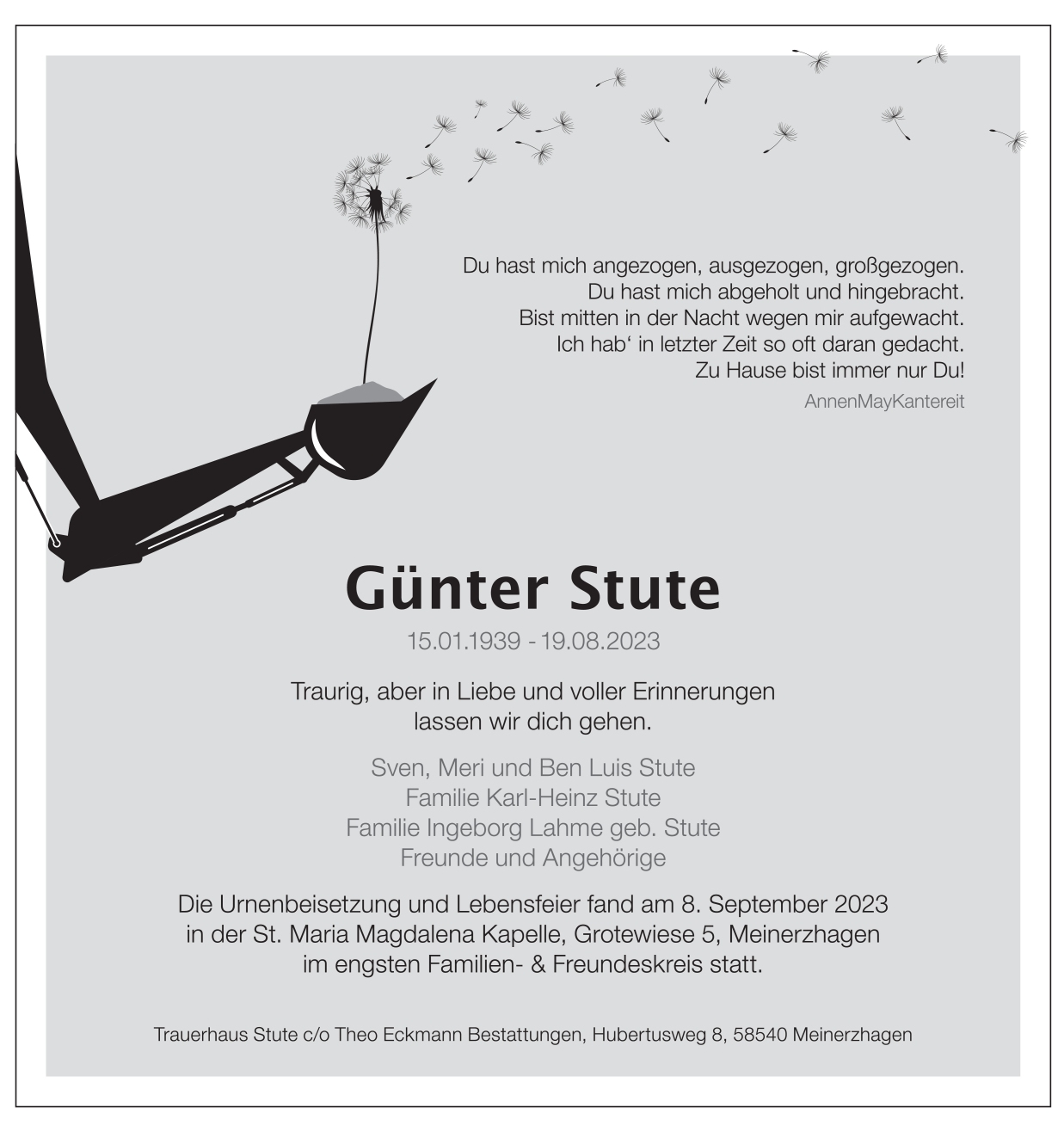 in diesen Tagen fühlen wir mit Ihnen und wünschen Ihnen von Herzen, dass Sie aus den glücklichen Erinnerungen Kraft schöpfen, um positiv in die Zukunft zu gehen. Diese Gedenkseite möge Ihnen dabei helfen, Ihre Trauer zu teilen und das Andenken gemeinsam wachzuhalten.