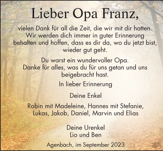 †12.09.2023, Ruhestätte: Friedhof Agenbach