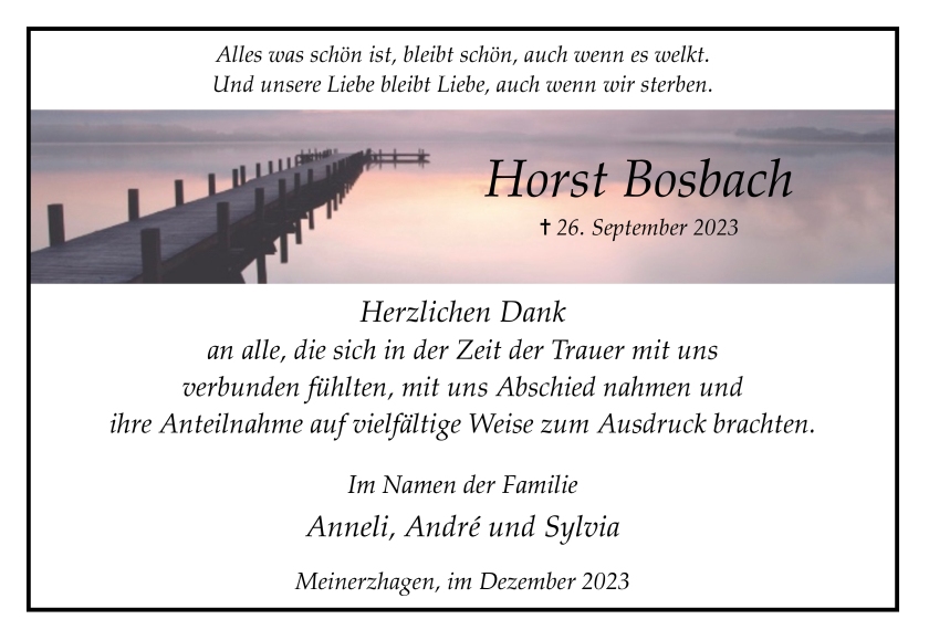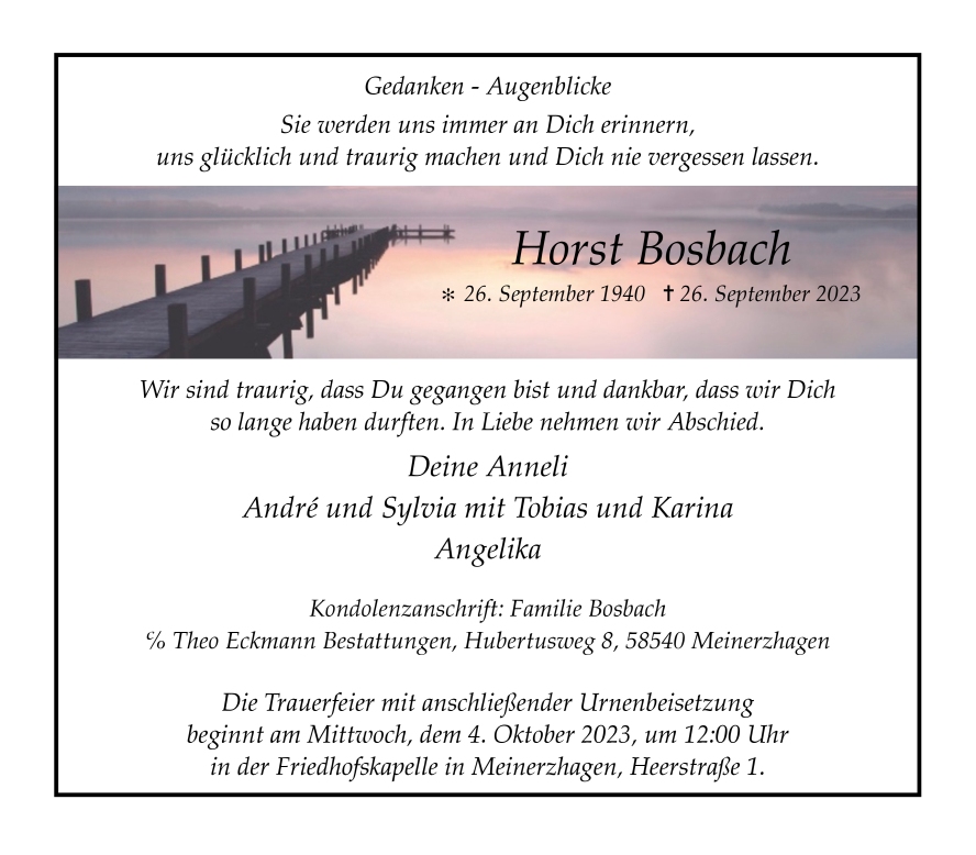 in diesen Tagen fühlen wir mit Ihnen und wünschen Ihnen von Herzen, dass Sie aus den glücklichen Erinnerungen Kraft schöpfen, um positiv in die Zukunft zu gehen. Diese Gedenkseite möge Ihnen dabei helfen, Ihre Trauer zu teilen und das Andenken gemeinsam wachzuhalten.