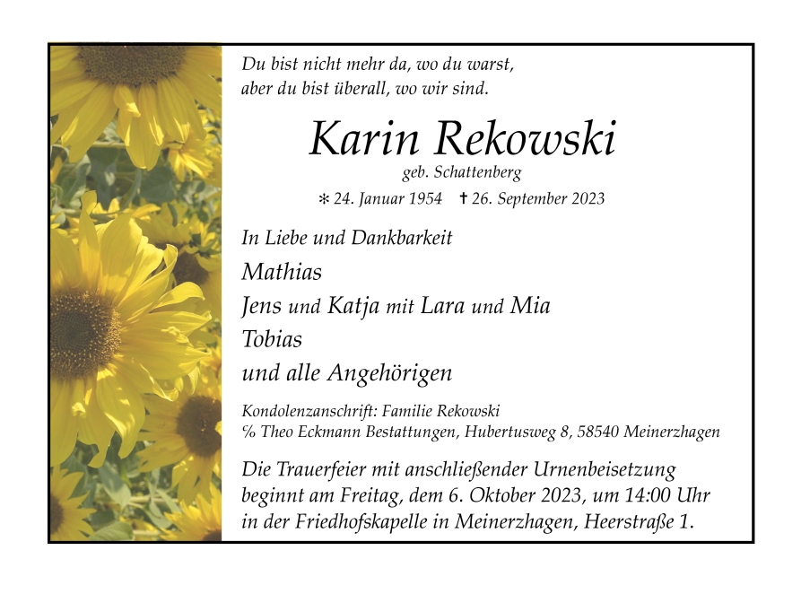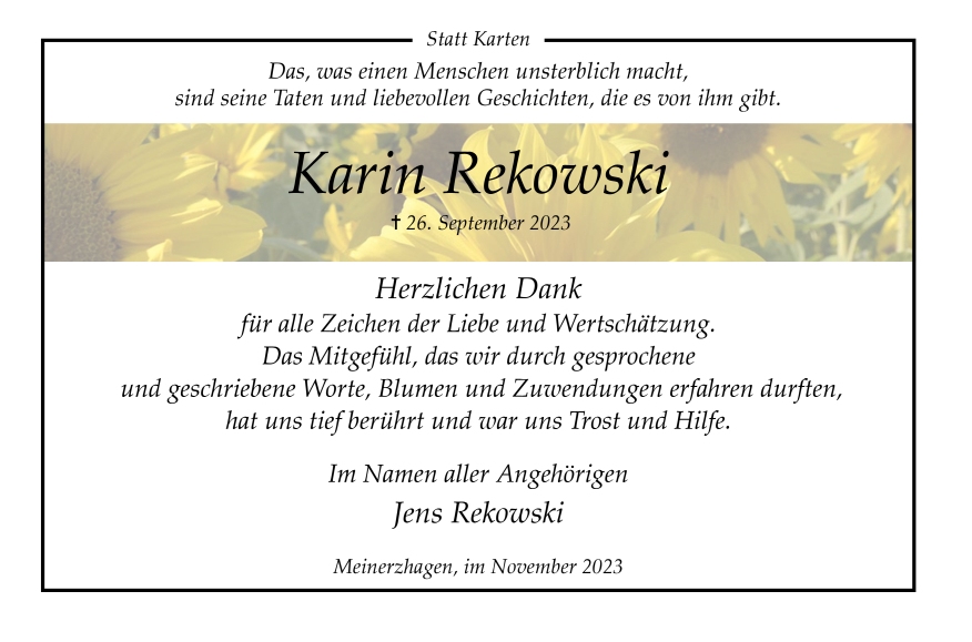 in diesen Tagen fühlen wir mit Ihnen und wünschen Ihnen von Herzen, dass Sie aus den glücklichen Erinnerungen Kraft schöpfen, um positiv in die Zukunft zu gehen. Diese Gedenkseite möge Ihnen dabei helfen, Ihre Trauer zu teilen und das Andenken gemeinsam wachzuhalten.