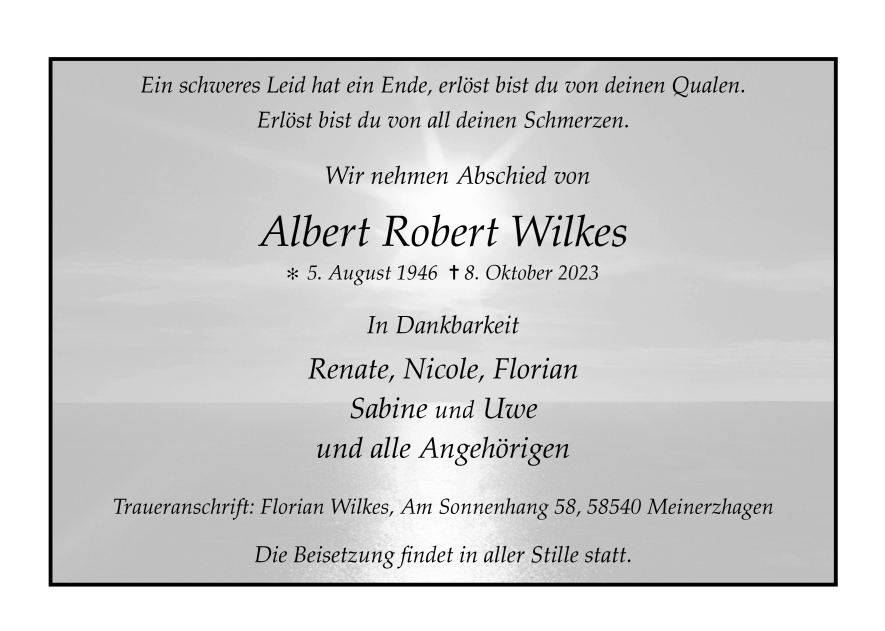 in diesen Tagen fühlen wir mit Ihnen und wünschen Ihnen von Herzen, dass Sie aus den glücklichen Erinnerungen Kraft schöpfen, um positiv in die Zukunft zu gehen. Diese Gedenkseite möge Ihnen dabei helfen, Ihre Trauer zu teilen und das Andenken gemeinsam wachzuhalten.
