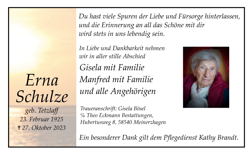 in diesen Tagen fühlen wir mit Ihnen und wünschen Ihnen von Herzen, dass Sie aus den glücklichen Erinnerungen Kraft schöpfen, um positiv in die Zukunft zu gehen. Diese Gedenkseite möge Ihnen dabei helfen, Ihre Trauer zu teilen und das Andenken gemeinsam wachzuhalten.