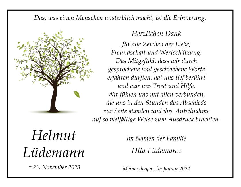 in diesen Tagen fühlen wir mit Ihnen und wünschen Ihnen von Herzen, dass Sie aus den glücklichen Erinnerungen Kraft schöpfen, um positiv in die Zukunft zu gehen. Diese Gedenkseite möge Ihnen dabei helfen, Ihre Trauer zu teilen und das Andenken gemeinsam wachzuhalten.