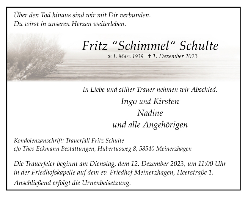 in diesen Tagen fühlen wir mit Ihnen und wünschen Ihnen von Herzen, dass Sie aus den glücklichen Erinnerungen Kraft schöpfen, um positiv in die Zukunft zu gehen. Diese Gedenkseite möge Ihnen dabei helfen, Ihre Trauer zu teilen und das Andenken gemeinsam wachzuhalten.
