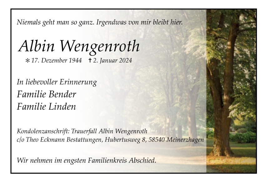 in diesen Tagen fühlen wir mit Ihnen und wünschen Ihnen von Herzen, dass Sie aus den glücklichen Erinnerungen Kraft schöpfen, um positiv in die Zukunft zu gehen. Diese Gedenkseite möge Ihnen dabei helfen, Ihre Trauer zu teilen und das Andenken gemeinsam wachzuhalten.