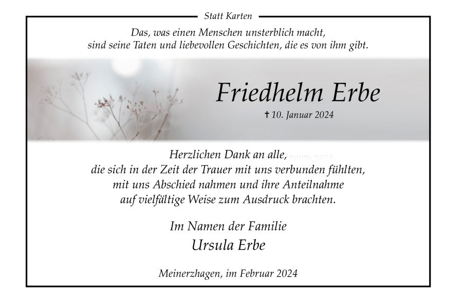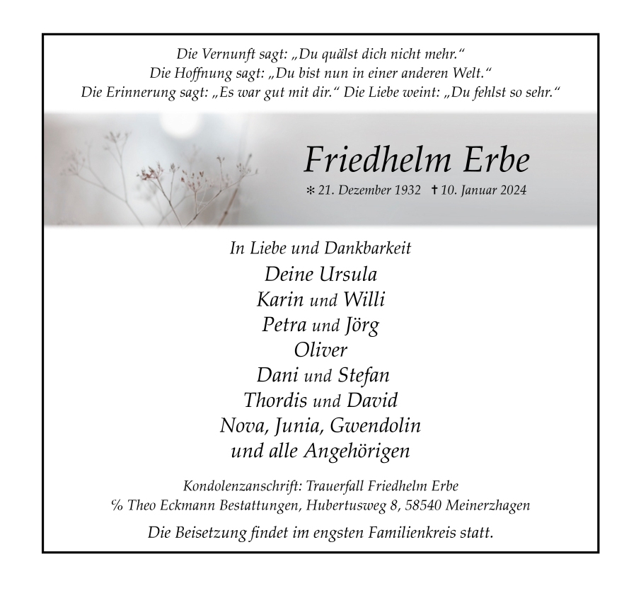 in diesen Tagen fühlen wir mit Ihnen und wünschen Ihnen von Herzen, dass Sie aus den glücklichen Erinnerungen Kraft schöpfen, um positiv in die Zukunft zu gehen. Diese Gedenkseite möge Ihnen dabei helfen, Ihre Trauer zu teilen und das Andenken gemeinsam wachzuhalten.