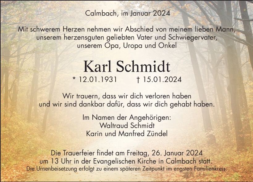 †15.01.2024, Ruhestätte: Waldfriedhof Bad Wildbad