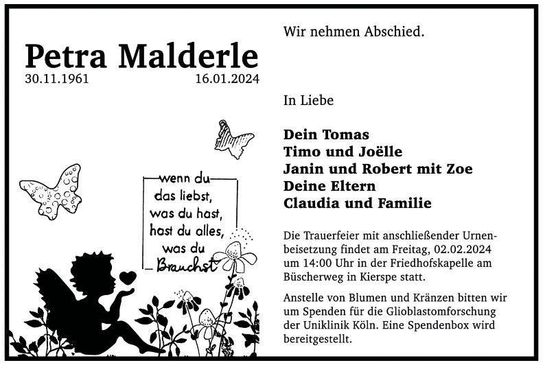 in diesen Tagen fühlen wir mit Ihnen und wünschen Ihnen von Herzen, dass Sie aus den glücklichen Erinnerungen Kraft schöpfen, um positiv in die Zukunft zu gehen. Diese Gedenkseite möge Ihnen dabei helfen, Ihre Trauer zu teilen und das Andenken gemeinsam wachzuhalten.