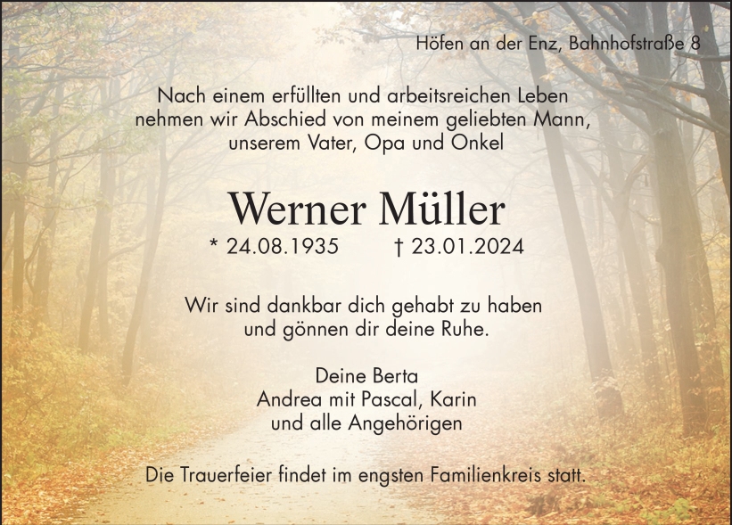 †23.01.2024, Ruhestätte: Friedhof Höfen an der Enz