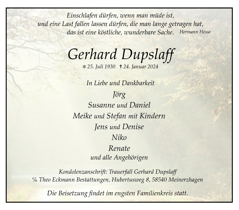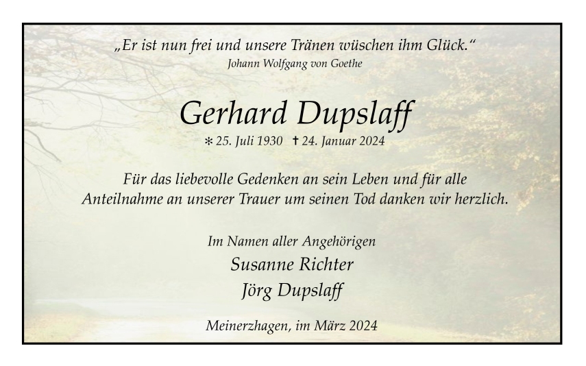 in diesen Tagen fühlen wir mit Ihnen und wünschen Ihnen von Herzen, dass Sie aus den glücklichen Erinnerungen Kraft schöpfen, um positiv in die Zukunft zu gehen. Diese Gedenkseite möge Ihnen dabei helfen, Ihre Trauer zu teilen und das Andenken gemeinsam wachzuhalten.
