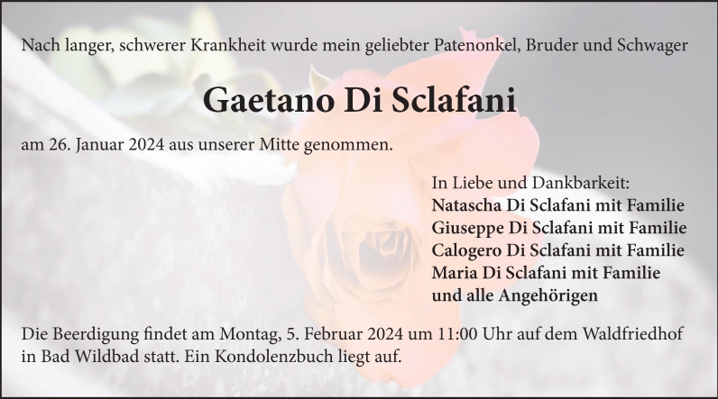 †26.01.2024, Ruhestätte: Waldfriedhof Bad Wildbad