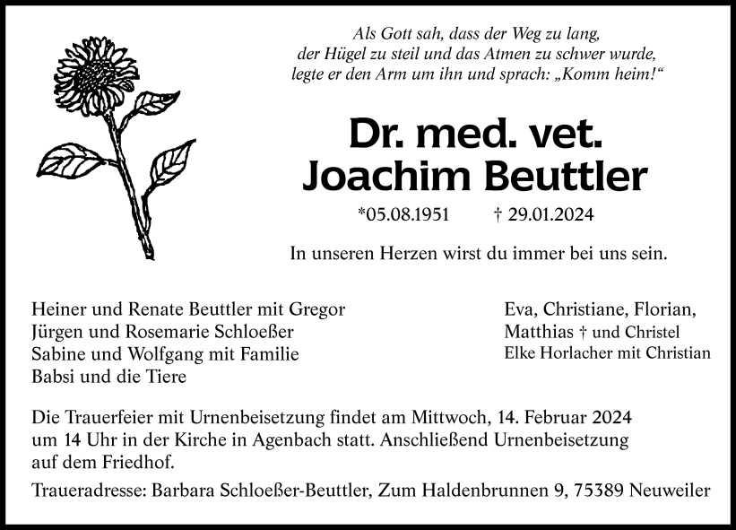 †29.01.2024, Ruhestätte: Friedhof Agenbach
