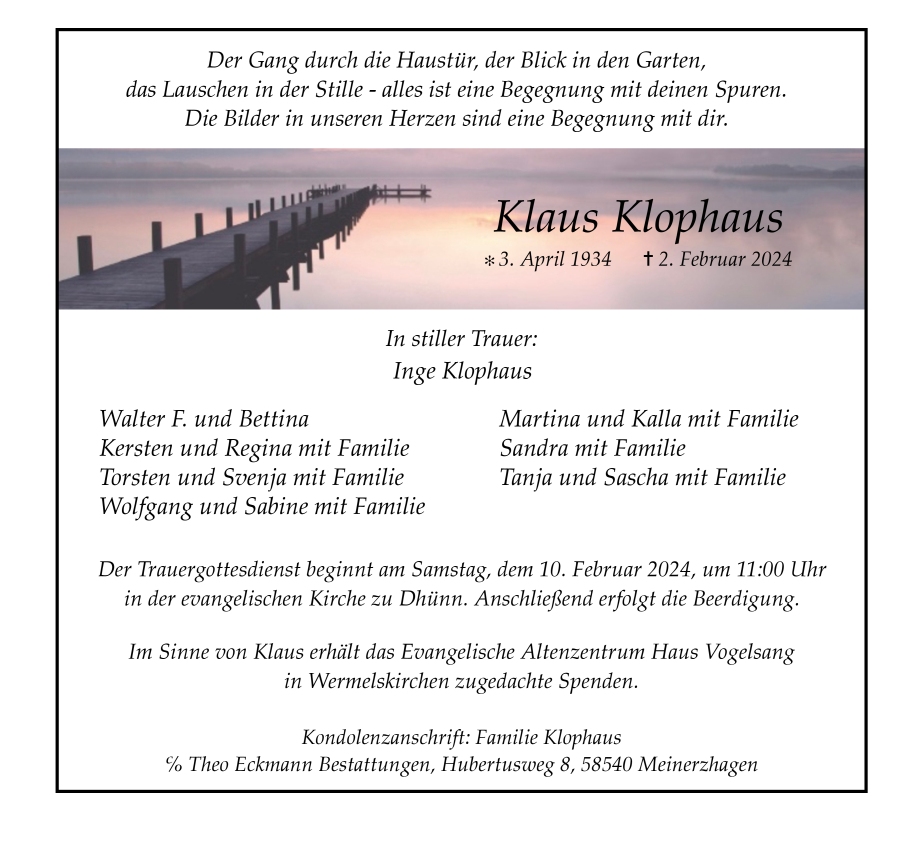 Theo Eckmann Bestattungen, am 06.02.2024