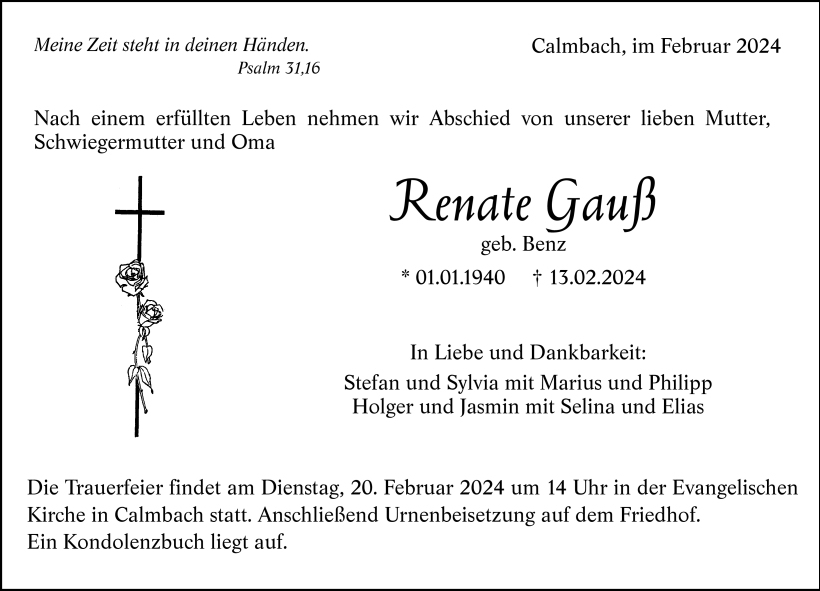 †13.02.2024, Ruhestätte: Friedhof Calmbach
