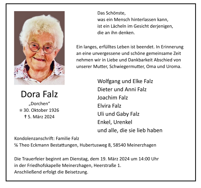 Theo Eckmann Bestattungen, am 16.03.2024