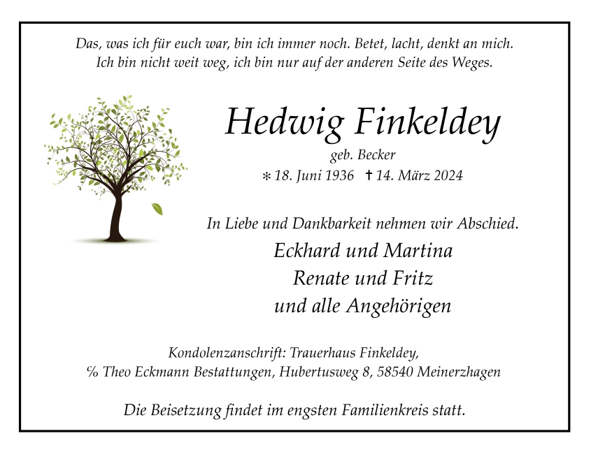 in diesen Tagen fühlen wir mit Ihnen und wünschen Ihnen von Herzen, dass Sie aus den glücklichen Erinnerungen Kraft schöpfen, um positiv in die Zukunft zu gehen. Diese Gedenkseite möge Ihnen dabei helfen, Ihre Trauer zu teilen und das Andenken gemeinsam wachzuhalten.