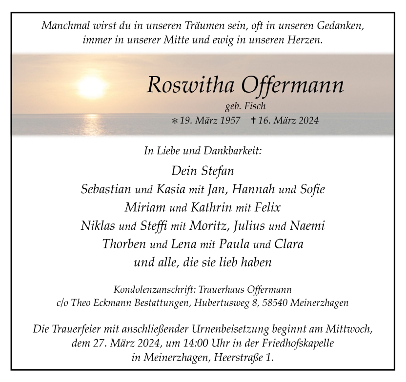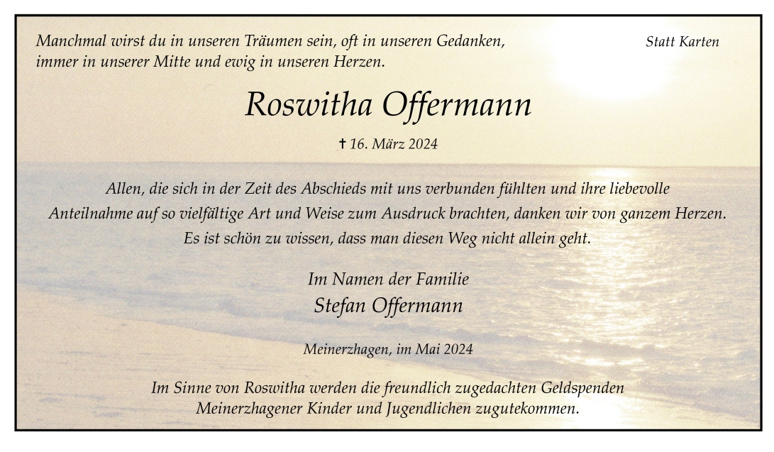 in diesen Tagen fühlen wir mit Ihnen und wünschen Ihnen von Herzen, dass Sie aus den glücklichen Erinnerungen Kraft schöpfen, um positiv in die Zukunft zu gehen. Diese Gedenkseite möge Ihnen dabei helfen, Ihre Trauer zu teilen und das Andenken gemeinsam wachzuhalten.