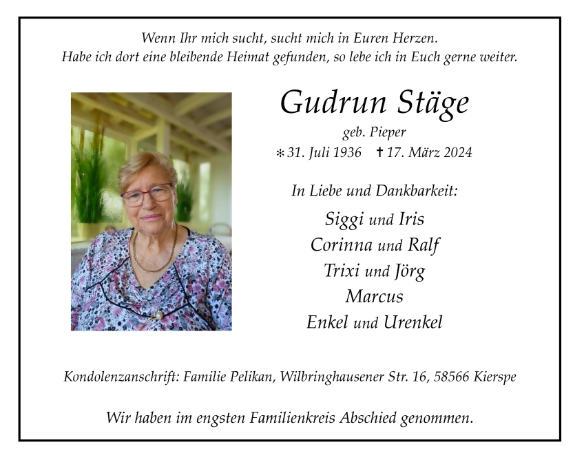 in diesen Tagen fühlen wir mit Ihnen und wünschen Ihnen von Herzen, dass Sie aus den glücklichen Erinnerungen Kraft schöpfen, um positiv in die Zukunft zu gehen. Diese Gedenkseite möge Ihnen dabei helfen, Ihre Trauer zu teilen und das Andenken gemeinsam wachzuhalten.