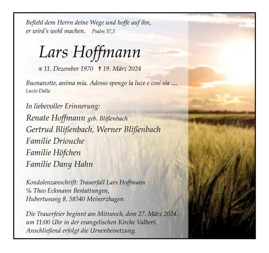 in diesen Tagen fühlen wir mit Ihnen und wünschen Ihnen von Herzen, dass Sie aus den glücklichen Erinnerungen Kraft schöpfen, um positiv in die Zukunft zu gehen. Diese Gedenkseite möge Ihnen dabei helfen, Ihre Trauer zu teilen und das Andenken gemeinsam wachzuhalten.