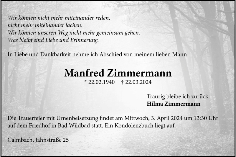 †22.03.2024, Ruhestätte: Waldfriedhof Bad Wildbad